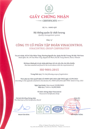 Chứng chỉ ISO 9001: 2015 – Công ty CP Tập đoàn Vinacontrol