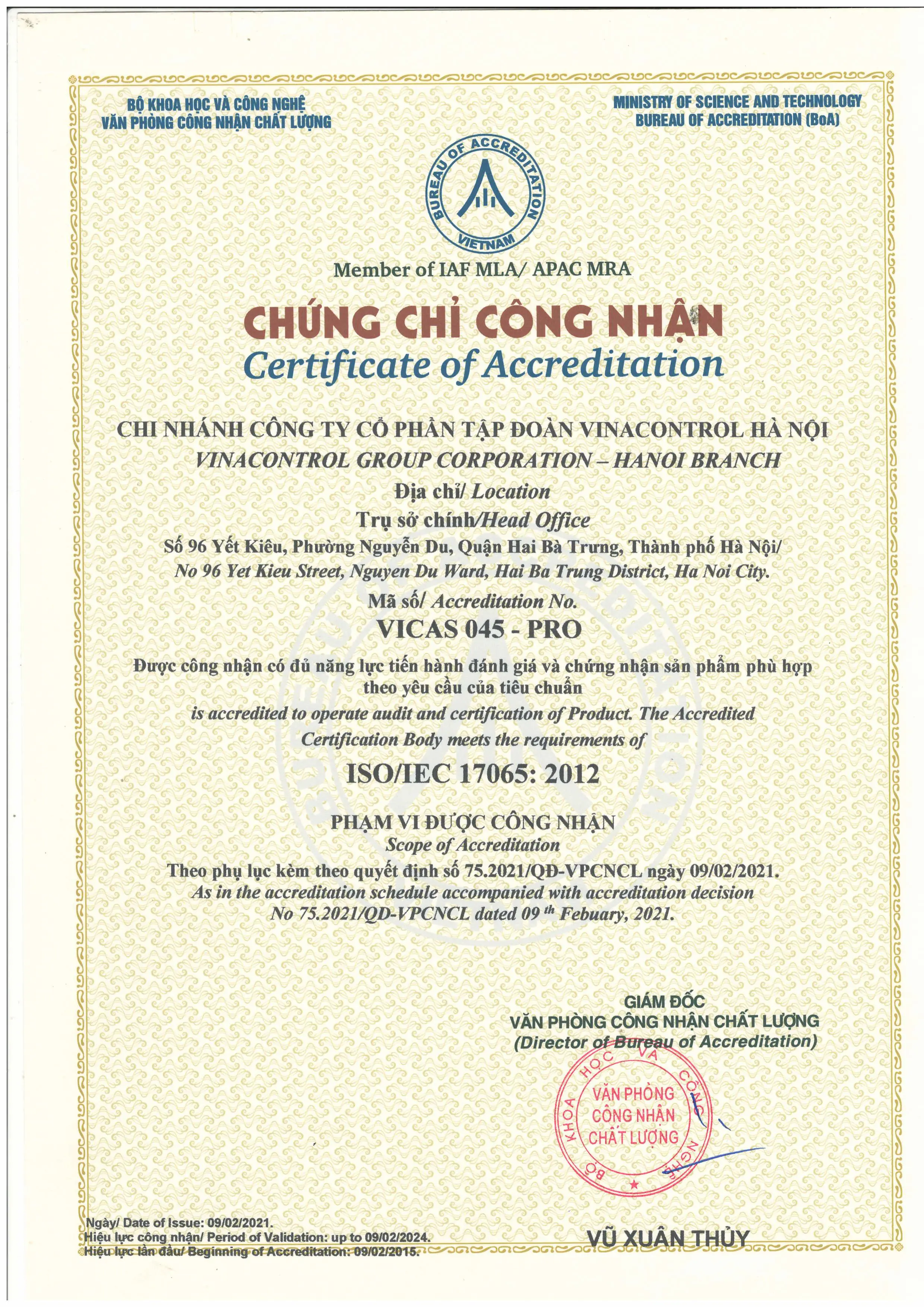 ISO/IEC 17065:2012 (VICAS 045-Pro) - Vinacontrol Hà Nội