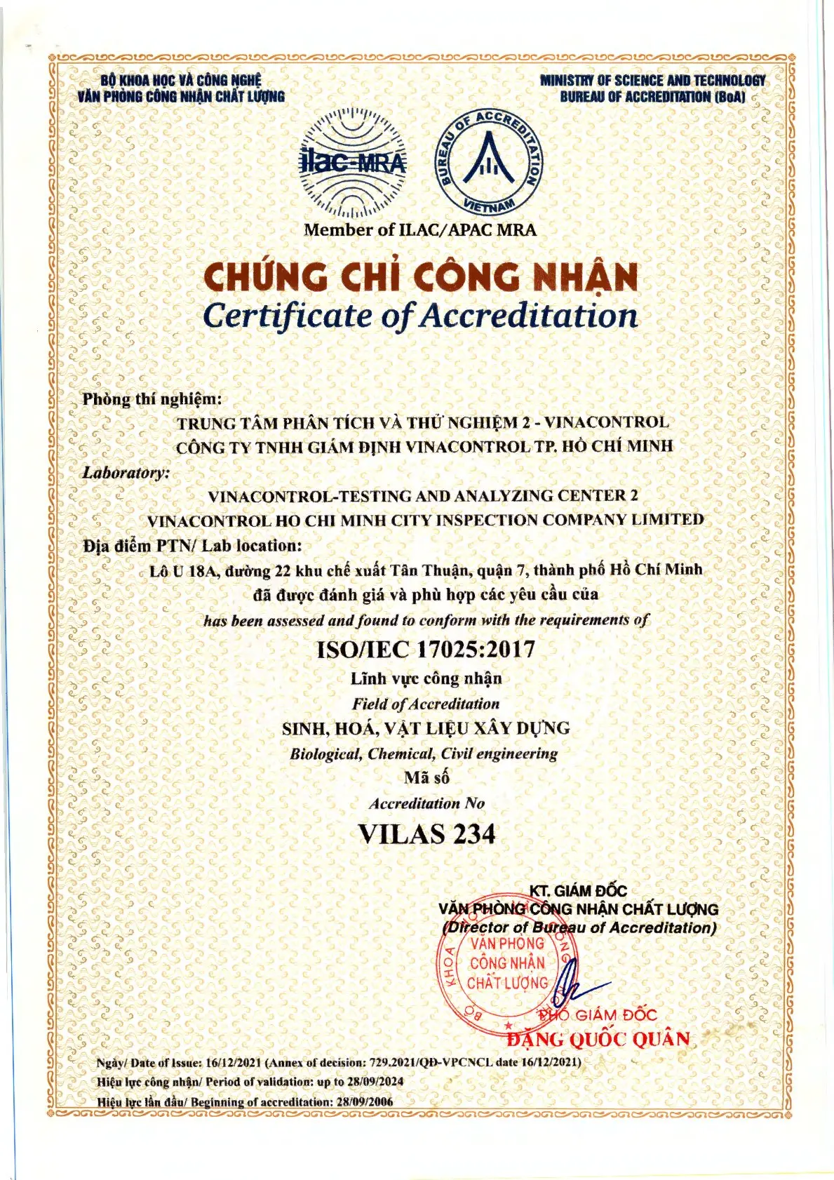 ISO/IEC 17025:2005 (VILAS 234) - Trung tâm Phân tích và Thử nghiệm 2 Vinacontrol