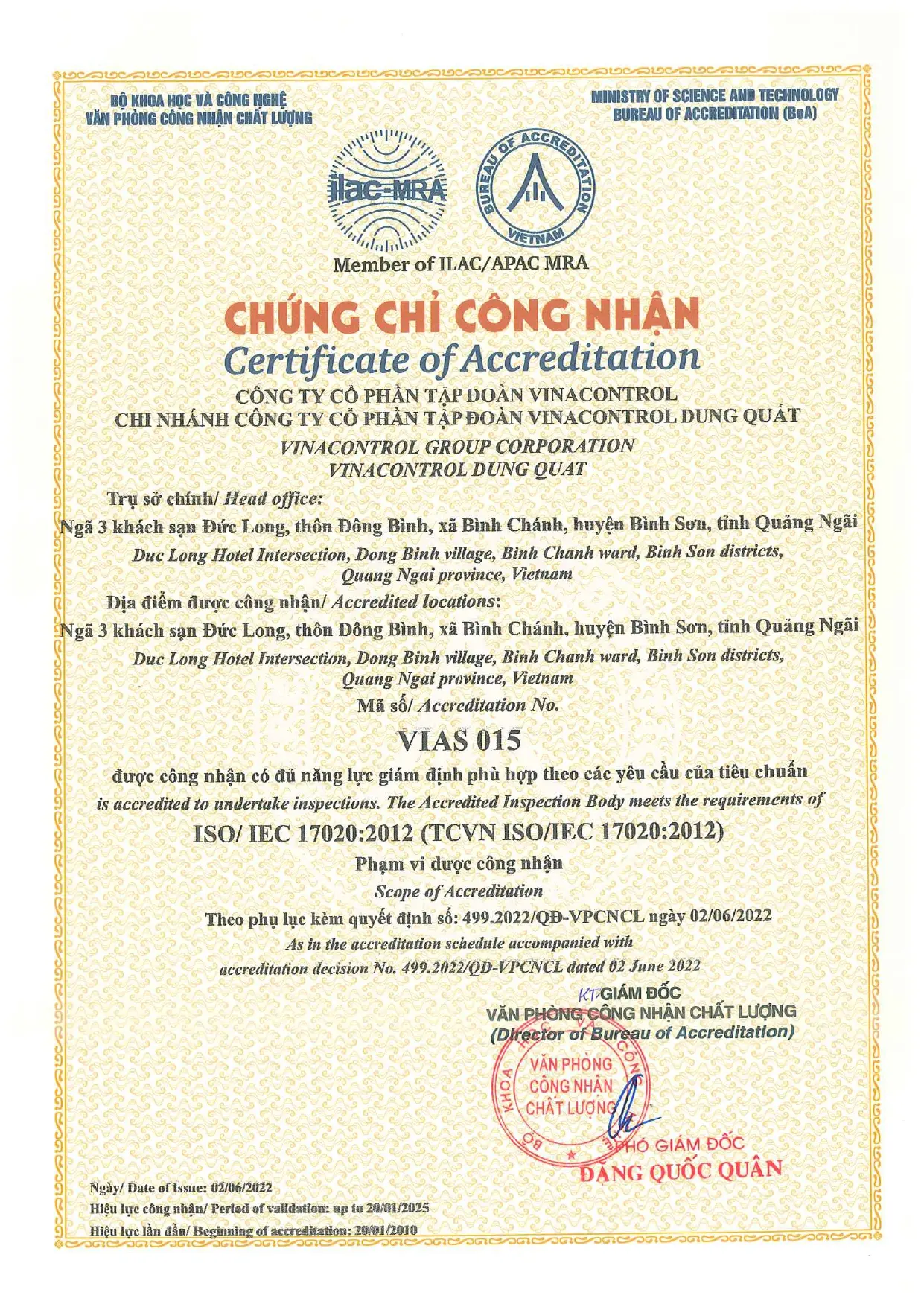 ISO/IEC 17020:2012 (VIAS 015) - Vinacontrol Dung Quất