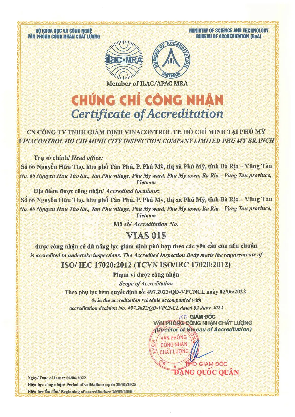 ISO/IEC 17020:2012 (VIAS 015) - Vinacontrol Phú Mỹ